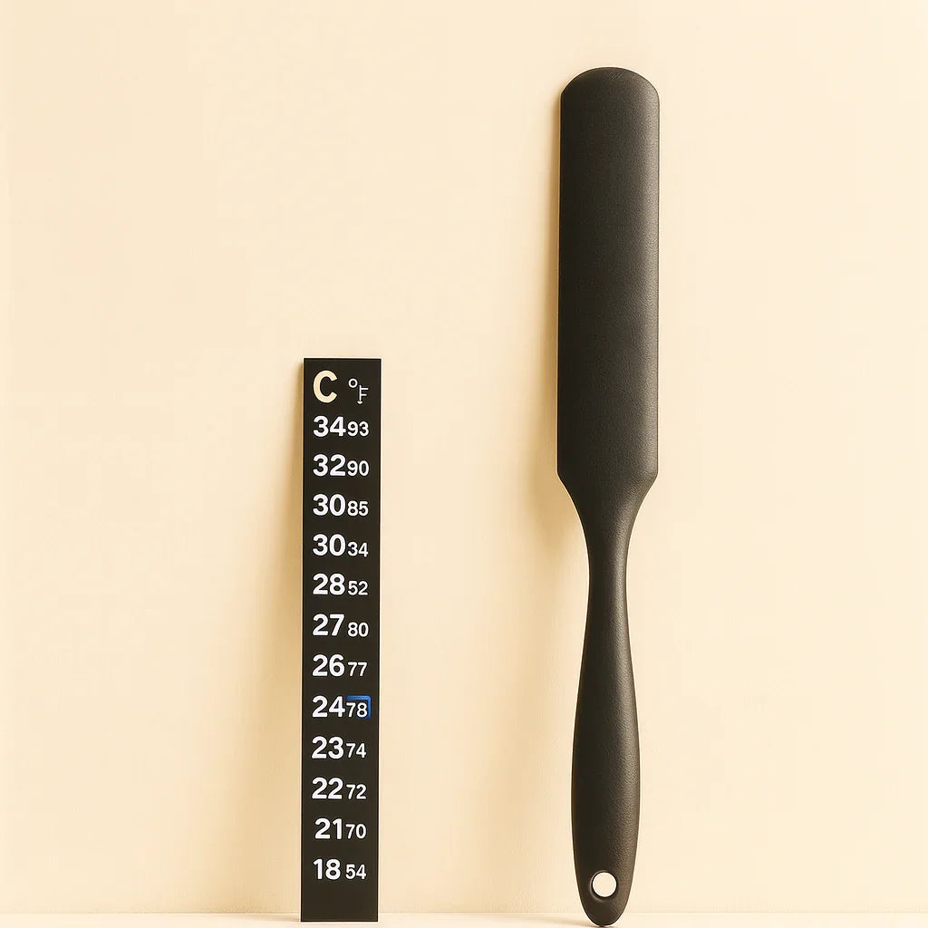 A premium matte-black spatula for clean, effortless feeding, paired with a precise temperature strip that highlights the ideal fermentation zone at a glance. Together, they make maintaining a healthy, predictable starter simple and mess-free.